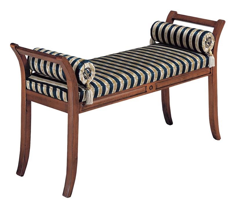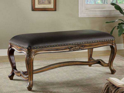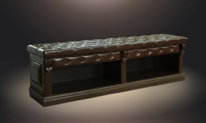 Дорогостоящий, изысканный материал, которым чаще всего отделывают банкетки, изготовленные из натурального дерева. Выбирать дорогостоящие модели, оббитые кожи можно для интерьеров в классическом стиле и стиле барокко.
