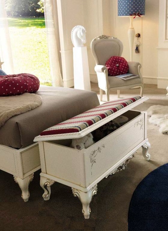 Для маленькой спальни не стоит выбирать вид скамьи со спинкой, так как такая модель просто «украдёт» и так недостающее пространство. В таком случае лучше обратить внимание на изделия без спинки.