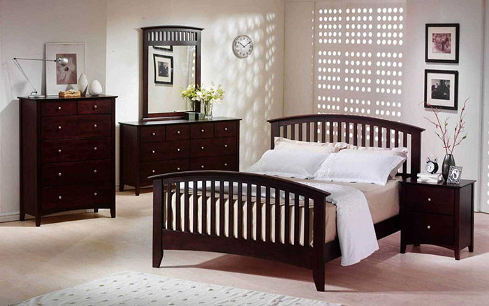 - ДСП или МДФ. Это более дешевые материалы, использующиеся для изготовления. Стоит отметить, что некачественный ДСП может иметь в своем составе вредные формальдегиды, которые негативно влияют на здоровье человека, поэтому данный вариант лучше не использовать для обустройства спальни. МДФ отличается экологической чистотой, невысокой ценой и может качественно имитировать дорогие сорта дерева. Это самый оптимальный вариант для бюджетного обустройства спальни;