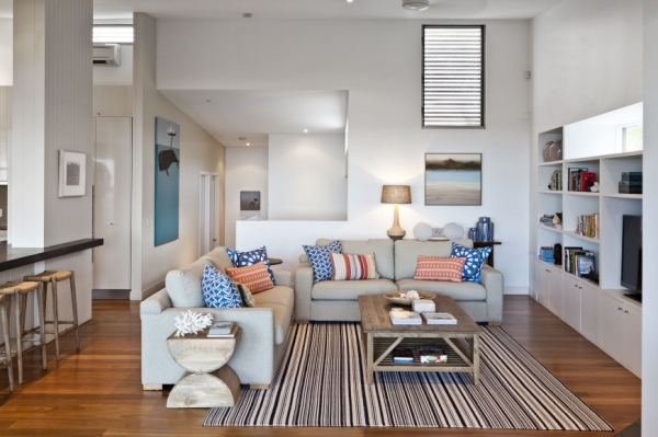 Необычное решение – расстилать ковры слоями. Можно, например, на большой однотонный ковёр положить маленький коврик. Сразу же появится новый акцент, а в комнате станет уютней и теплей.