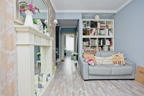 1. Светлые стены, придадут ощущение пространства. Парижане предпочитают не белый, а больше цвет слоновой кости и другие светлые тона, так как в квартирах мало света. Можно покрасить одну стену в темный цвет, тем самым, разделив квартиру-студию на зоны. Часто на стенах размещают рамы, куда вешают светильники. Если решением будет: поклеить обои, выбирайте светлые с мелким цветочным принтом.