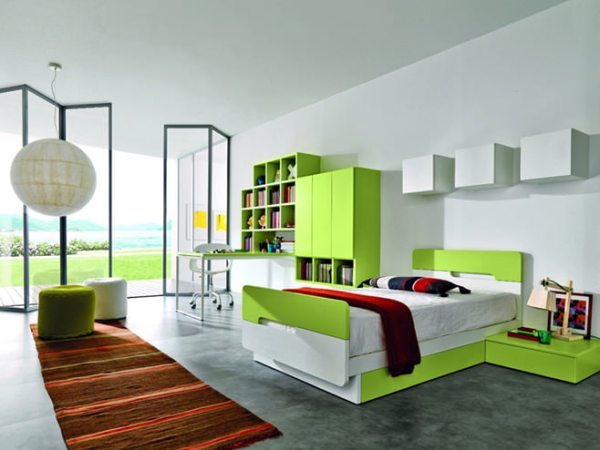 Вторым важным элементом в интерьере детской комнаты является кровать. От правильного расположения кровати будет зависеть многое: установка спального места возле двери может вызвать бессонницу. В правилах «фэн-шуй» считается, что сильные потоки энергии, которые исходят от входной двери, будут мешать здоровому сну. Лучше расположить кровать таким образом, чтобы малыш мог видеть входную дверь.