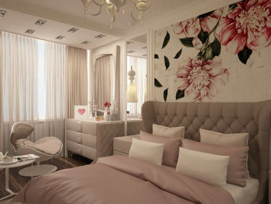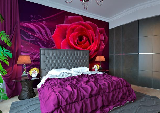Особенностью декора спальни при помощи фотообоев является то, что рисунок должен быть идеально подобран под цвет основных обоев, интерьер комнаты и ее стиль, только тогда они будут гармонично смотреться в образе.